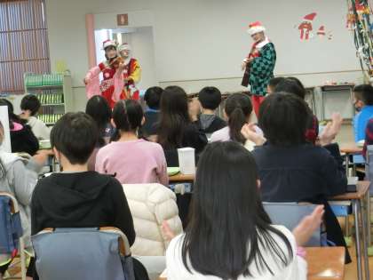 高学年の子供たちも、音楽を聴きながら給食の時間を楽しみました。思わず手拍子が起こります。体がリズミカルに動きます。すてきなひとときになりました。演奏が終わると、子供たちが演奏者の皆様を見送ります。大きく手を振りながら「ありがとう」と伝えました。