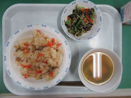 今日から3学期の給食が始まります。今まで通り衛生管理に気を付けて、安全でおいしい給食づくりに努めます。今日は1月11日鏡開きから、雑煮にしました。梅型と雪ダルマ型のかまぼことうるち米で作られた餅トックを使い、かわいらしく・食べやすい献立にしました。