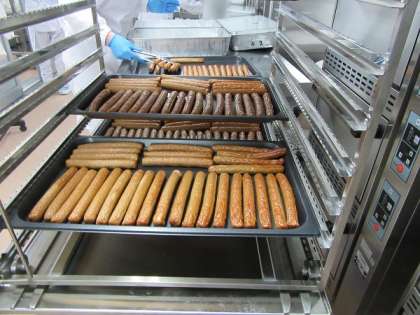 1月24日〜30日は全国学校給食週間です。本校では地域で収穫された新鮮な食べ物を食べる「地産地消」に重点を置きました。今日はキャベツとにんじんが東京都産です。今日はオーブンで焼いたウインナーとキャベツソテーを自分でパンにはさんで食べるウインナーサンドです。