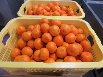 これから大きなかんきつ類が旬を迎えます。今日のくだものはぽんかんです。みかんより少し大きいのですが果肉と皮ともにやわらかく食べやすいくだものです。