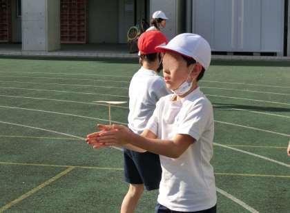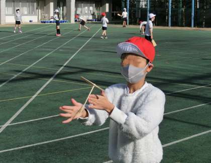 竹とんぼをどこまで高く飛ばせるか競い合ったり、手乗せごまを何度も何度も練習したり。私たち大人にとっては昔懐かしい、子供たちにとっては新鮮な取り組みになりました。
