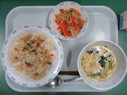 今日は立春、暦の上では春になりました。これからもう少しで梅の花が咲き暖かくなります。今日は梅干し入りの梅チャーハンです、後味にほんのり酸味を感じる味つけにしました。