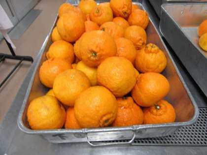 30年前の3月1日に初めてデコポンが出荷されたことから、3月1日はデコポンの日になりました。デコポンをしっかり洗った後、4等分に切っていきます。