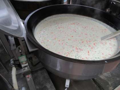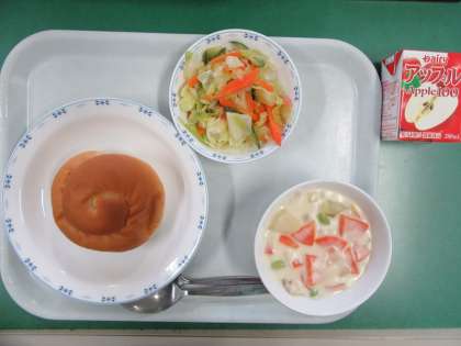 今日は魚介をたっぷり入れたシーフードシチューです。魚介のうまみがホワイトシチューにしみこみ、パンによく合う一品です。