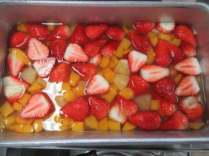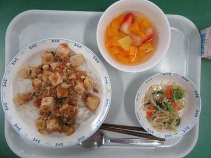 今日は給食委員会が集計したリクエスト給食、デザートのフルーツポンチです。今日は2Lサイズの大きないちごも入ったフルーツポンチです。さっぱりとした甘さがおいしいデザートを子供たちは、しっかり食べていました。