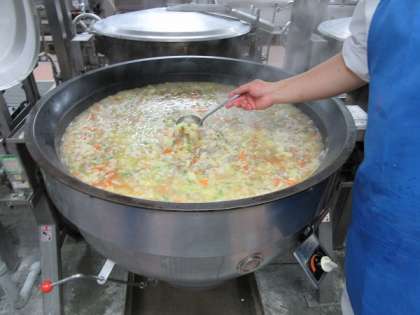 豆腐・納豆など豆を加工してできた食べ物は家庭でも食べる機会が多いのですが、豆単体で食べる習慣は減っています。今日は具だくさんのスープに白いんげん豆を煮込んだスープです。具材のうま味がおいしいスープをしっかり食べていました。