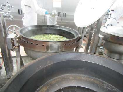 今日の根菜汁にはごぼうやれんこんなどの根菜をたくさんスープで煮て調理しました。シャキシャキとした食感がおいしいスープです。各学級ごとに計量して配ります。