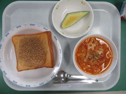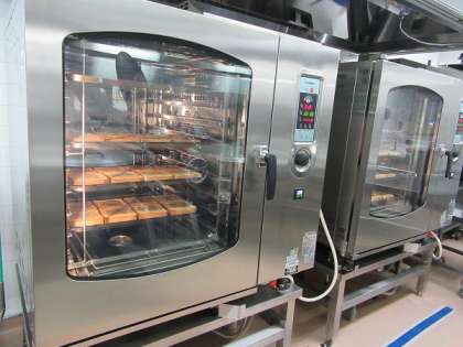 駒沢小学校にはオーブンが2台設置されています。今日はセサミペーストを食パンに塗りオーブンで焼いたセサミトーストです。2台のオーブンで一気に焼いていきます。