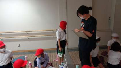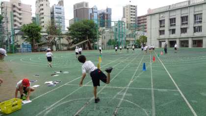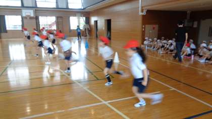 3、4年生は体育館で「シャトルラン」や「握力」に取り組んでいました。「ソフトボール投げ」は5年生の様子です。