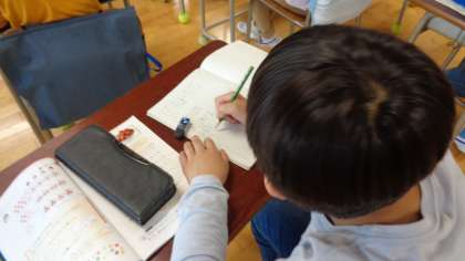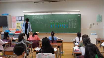 少人数に分かれての算数「わり算」の学習です。どの教室も熱心に取り組んでいる姿が見られました。