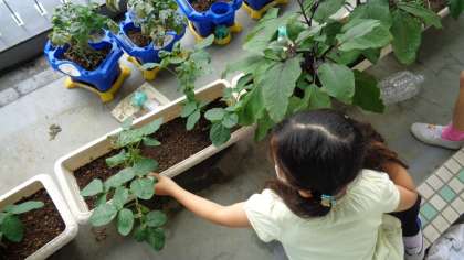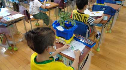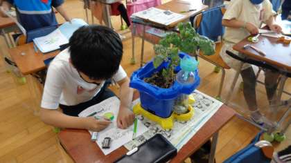 ミニトマトも、実をたくさんつけてきています。ナスもオクラもグングン成長してきています。