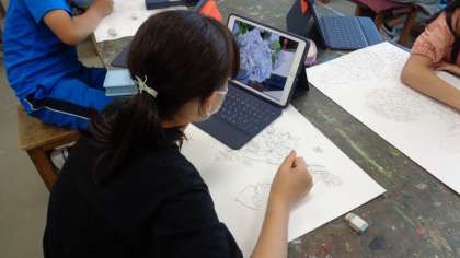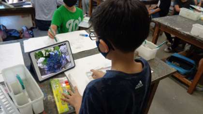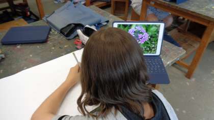 先週に引き続き紫陽花のスケッチをしています。先週の花を自分のiPadで写真にとってあったので、それを見て細かい部分まで描きます。