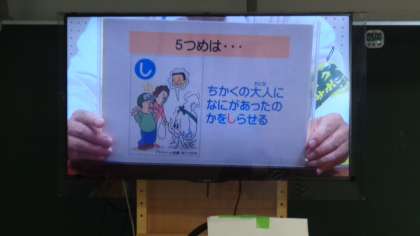 世田谷警察署の方々をお呼びして、セーフティ教室を行いました。不審者に声をかけられたときどうするか、万引きはダメ。など教えていただきました。合い言葉は「いかのおすし」おぼえたかな?!