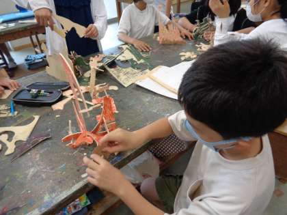 5年の時に版画で使った版木。素敵なオブジェになってきました。