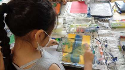 できたいろがみを切ったり、貼ったりして作品を作っていきます。自分にしか出せない色や質感。自分だけのいろがみで楽しい作品ができそうです。