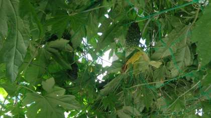 4年生のベランダにゴーヤで緑のカーテンができています。