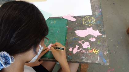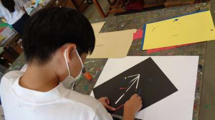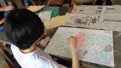 貼り絵で自分で想像した世界を表現しました。大胆な構図で貼っていく子、カッターを使い繊細に切っていく子。いろいろな世界が表現されていました。
