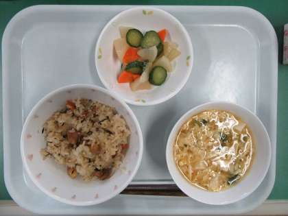 9月15日はひじきの日です。以前9月15日が敬老の日だったことから、食物繊維とミネラルが豊富なひじきを食べて健康に長生きをしてほしいと、ひじきの日ができました。食べやすい芽ひじきを使い、ごはんを炊きました。