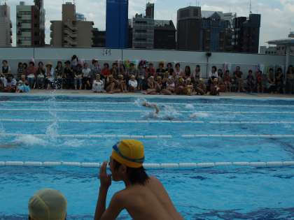 最後に、各学年代表選手による25m×8人と、50m×4人のリレーがありました。最後の最後、5年女子チームがわずかの差で逃げ切って1位になった時は、会場中が大いに沸きました。