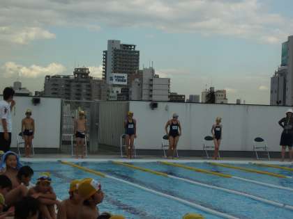 9月6日、水泳記録会が行われました。5,6年生が、各自、希望の種目にエントリーして、自己記録の更新に挑戦します。名前を呼ばれると、緊張の面持ちで、スタート位置に立ちます。隣のレーンの友達とデットヒートを繰り広げる子供もいれば、25mを泳ぎ切るのに必死の子供もいます。それぞれの真剣な姿に胸を打たれました。
