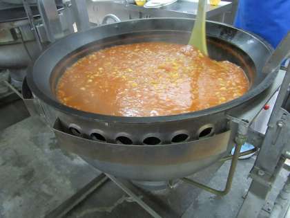 白いんげん豆とひよこ豆をトマトシチューと一緒に煮込んだビーンズシチューです。チーズ・ルウをゆっくり加えて、とろみをつけていきます。