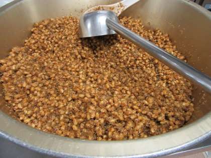 大豆を硬めにゆでから揚げにし、素揚げにしたじゃことごまを甘辛いタレと混ぜています。カリカリとした食感がおいしい1品です。
