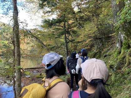絶好の天候の下、ハイキングを行いました。色づく木々を背景に、清々しい気持ちになりました。