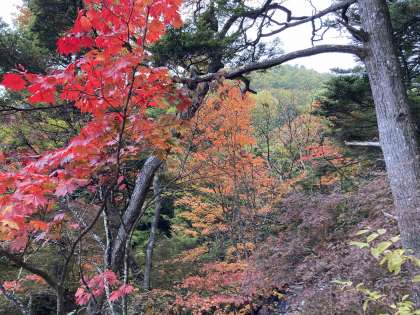紅葉も見られる絶景の中でのハイキングでした。いつもより長く歩いてちょっと疲れたかな?!