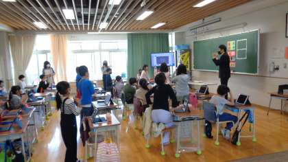 今日、3年生は外国語の研究授業でした。子どもたちは緊張することなく、楽しい雰囲気で、会話を楽しんでいました。