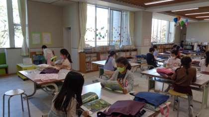 今日から新しい図書室がオープンしました。いっそう明るくなった図書室で、子どもたちがたくさんの本に出合ってほしいです。