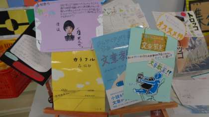 今年は、読書感想文のコンクールが中止になりました。代わりにポップ作りをして読書紹介をしています。まるで本屋さんのようです。
