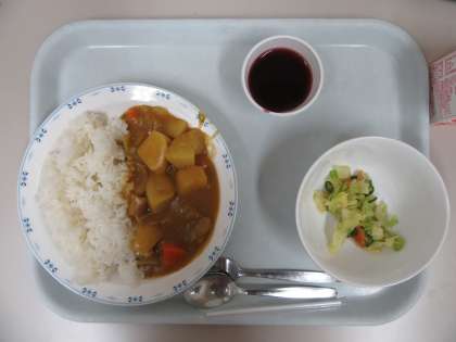 角切りの豚肉を加えたポークカレーができあ上がりました。大好きなカレーの香りが校内に広がり、子ども達はしっかりごはんにカレーをかけてたくさん食べていました。