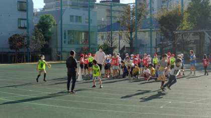 朝、低学年リレーの選手の子ども達が練習をしていました。バトンパスもとても上手になってきました。