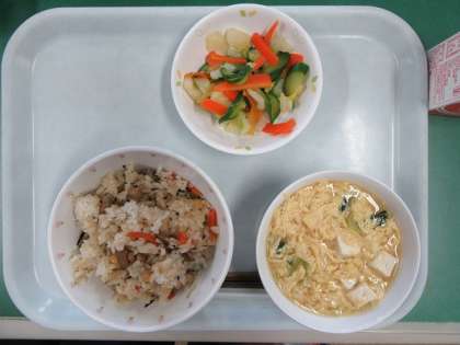 こんぶ・わかめなど海藻は食物繊維やミネラル類が多く含まれているので上手に料理に入れたい食べ物です。今日は芽ひじきを使いひじきごはんにしました。