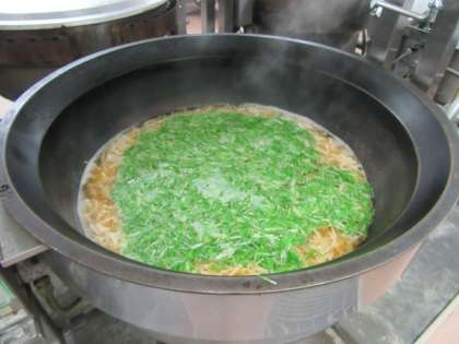 今が旬の野菜、水菜をすまし汁に入れました。シャキシャキとした食感の水菜はクセが少なく、鍋やサラダなど様々な料理に使われています。