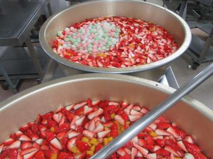 今日は立春、冬と春と節目の日です。立春を過ぎたころから梅の花が咲き始めます。今日のサラダのドレッシングには練り梅を加えてます。デザートにはいちごをたっぷり使ったフルーツ白玉です。