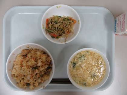 そぼろごはんには鶏ひき肉だけではなく、大豆のみじん切りも混ぜています。しっかりとした歯ごたえの大豆のひき肉がおいしいアクセントになっておいしい混ぜご飯になっています。