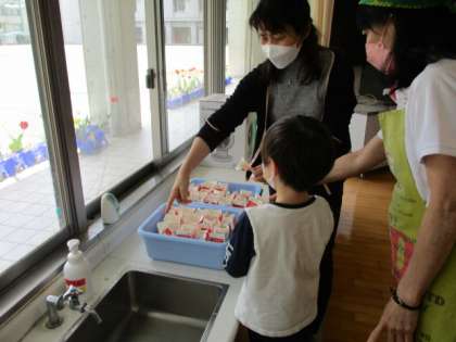 今日は給食の片付けも、帰りの支度も早くできたようです。支度が早かった分、先生に本を読んでもらったり、お話をしてもらったり。。。楽しい時間を過ごしていました。