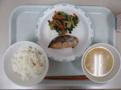 魚へんに春と書いて鰆(さわら)と呼びます。今日は梅醤油ダレにさわらを漬けて、手パンに並べて焼きました。給食室には大きなオーブンが2台あり、一度に多くの魚を焼くことができます。