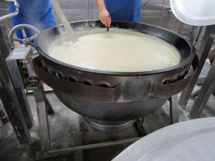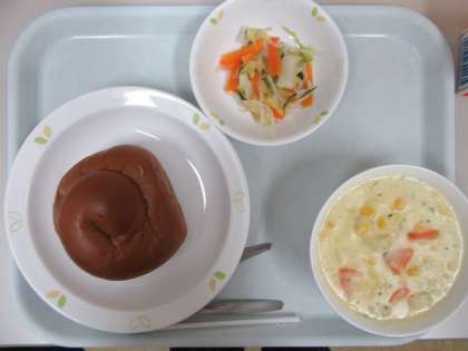 粒状のコーンとコーン状のコーンの両方をたっぷり入れたシチューができあがりました。コーンの甘みと粒の食感がおいしいシチューです。最後に中心温度を確認して完成です。