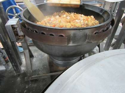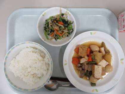 鶏肉・野菜・うずら卵などを煮込み味がしみてきたところに、オーブンで煮た生揚げを加えています。最後にさやいんげんを加えて、具だくさんな煮物が出来上がります。