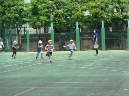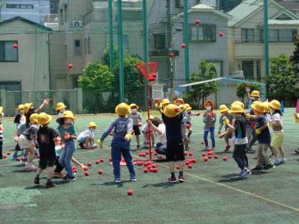 入学して初めての運動会に向け、かけっこ、玉入れ。一生懸命に練習しています。