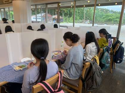 バスを降りる前から、「お腹空いた。」と言ってた子どもたち。お弁当を一口食べると、「美味しい!!」の声がたくさん聞こえてきました!