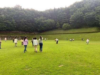 途中、「疲れた」と言っていた子どもたちですが、天狗山グラウンドに着くと、鬼ごっこをしたり、サッカーをしたり、元気よく遊んでいました。