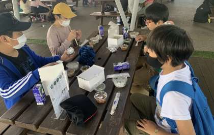 田園プラザに着き、1組は先にお土産を買い、2組はお弁当を食べました。