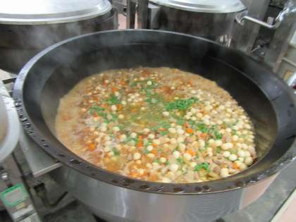 角切りにカットされた豚肉・厚いちょう切りに大根とにんじん・弾力があるこんにゃくをじっくりと煮込んだうま煮ができあがりました。切り方を変えるだけで、しっかりと噛める献立になります。