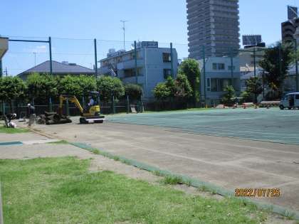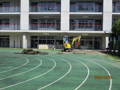 アスレチック改修工事と同時に校庭の改修工事も進んでいます。