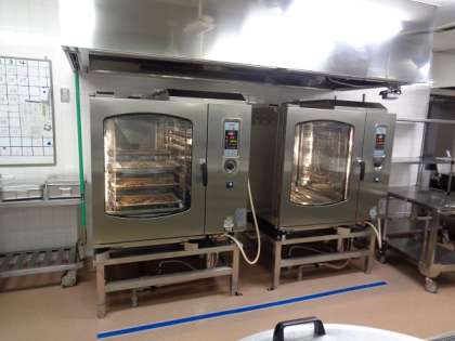 みじん切りにしたねぎをみそダレをつくり、鮭に漬けてオーブンでしっかり焼きました。焼き上がりの中心温度を確認後、各学級の食缶に数えながら入れていきます。