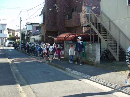 12月13日、避難訓練が行われました。訓練は毎月1回行っていますが、今回は、「近隣から火が出て、第2避難場所の駒沢中学校へ避難する」という設定の特別な訓練でした。校庭に集合した後、並んで駒沢中学校へ向かい、中学校脇の小道で点呼をとって、戻ってきました。「おしゃべりする声が全く聞こえず、感心した。」とは、生活指導主任の話です。震災の年、訓練の大事さが見直されています。今日のようにまじめに取り組んでいきたいと思いました。