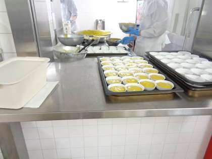 10月31日はハロウィンです。ハロウィンで使われるジャック・オー・ランタン、今ではかぼちゃ形が主流です。今日は生地にかぼちゃを練り混ぜたケーキ、計量しながらカップに生地を入れていきます。